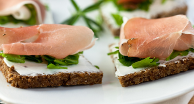 Smørrebrød ist ein üppig belegtes Butterbrot und kommt aus Dänemark. Es eignet sich ebenso sehr gut als Partyhappen und besteht aus Vollkorn,- Misch- oder Weizenbrot, Butter und einem fantasievollem Belag.