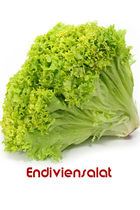 Auch der Endiviensalat gehört zur Salatfamilie der Zichorien. Er hat auch zwei Brüder, der eine ist allerdings nicht gekräuselt, sondern glatt ist: der Escariol, mit seinen breiten, kräftig gezahnten Blättern, und der Frisée mit seinen extrem krausen Blättern.