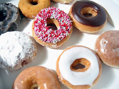 Beim Verzieren der Donuts gibt es natürlich unendlich viele Möglichkeiten. Z.B. in Schokolade tauchen und mit Kokosstreusel bestreuen.