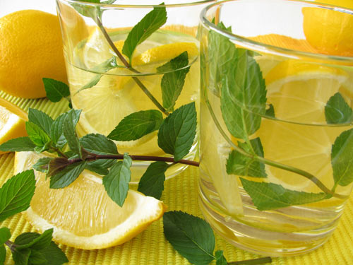 Pfefferminztee, Zitronensaft, Pfefferminzlikör, Rum, Apfelsaft, Pfefferminze