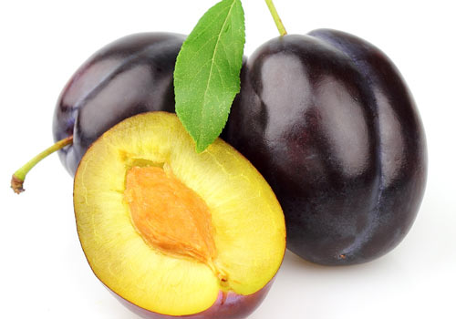 Die Auflaufform leicht einfetten und die Pflaumen gleichmäßig verteilen.